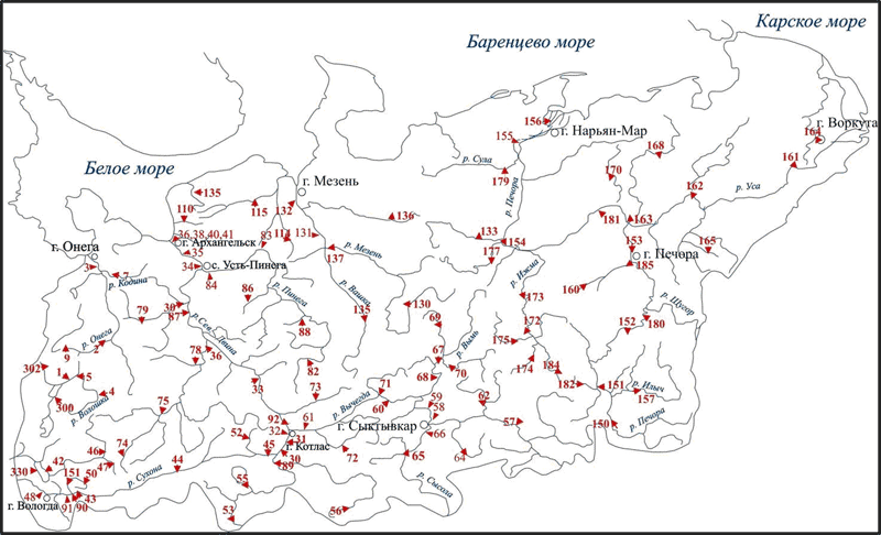 Сеть гидрохимических пунктов наблюдений на территории деятельности Северного УГМС