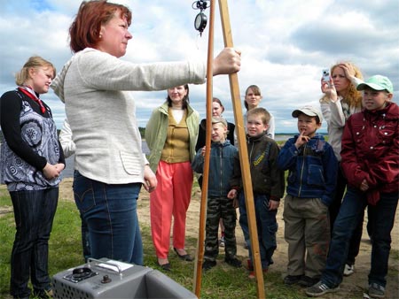 Участники марафона остановились в поселок Брин-Наволок Холмогорского района, встретились со школьниками и учителями, членами клуба друзей WWF «Экологический модуль». По словам преподавателя поселковой школы Натальи Нечаевой, ребята ходят в походы, изучают экологические проблемы малой Родины, выступают с докладами на собраниях общества охраны природы в Архангельске, занимаются активной исследовательской деятельностью: от выращивания огурцов на школьном подоконнике до изучения лишайников! Так, 34 разновидности местных лишайников ребята отыскали в лесу, изучили, описали. Удивительно: даже третьеклассники школы — Яша Митраков, Антон Павозков, Артем Распутин, Настя Ермолина, Дима Кротов — смогли рассказать «марафонцам» о том, что такое мутность и кислотность воды. Практическое занятие, которое провели с детьми специалисты ЦМС, запомнится сельское ребятне надолго: школьники самостоятельно измеряли уровень гамма-излучения, отбирали пробы воздуха… Экологическому клубу Брин-Наволока был вручен Ежегодный обзор загрязнения окружающей среды на территории деятельности Северного УГМС.